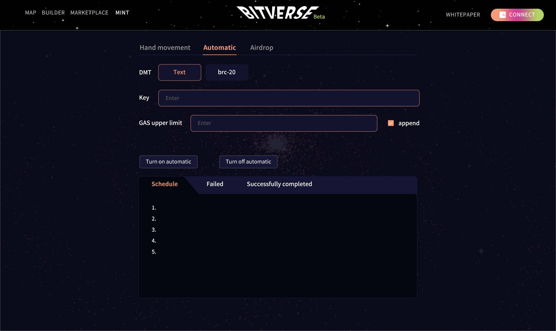 Provides visual mint MAP for DMT theory and metaverse projects to facilitate users to select based on MAP, and also provides batch mint function, such as 1-1000 pieces/batch.